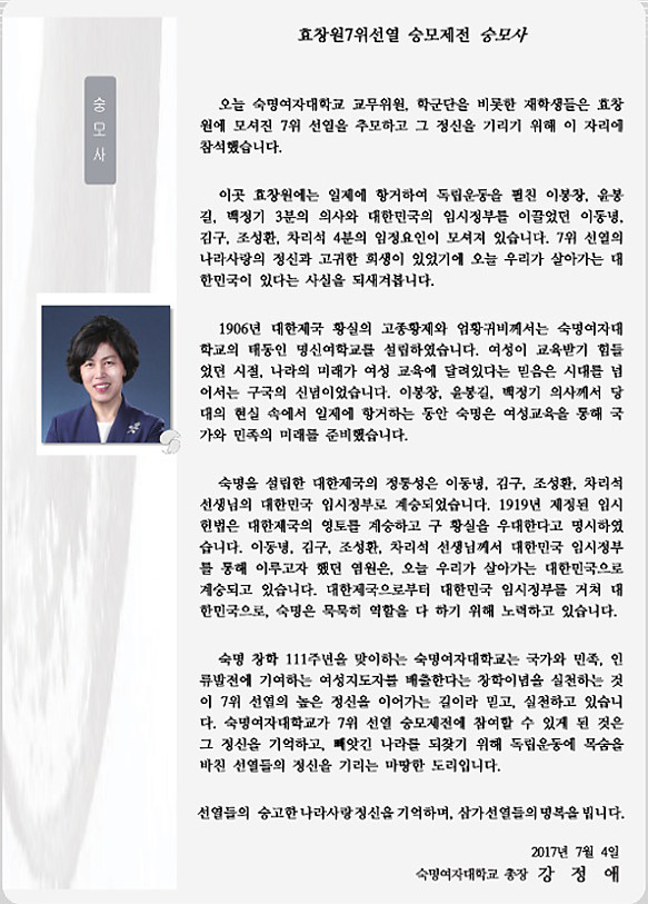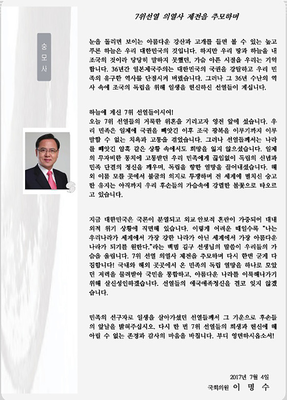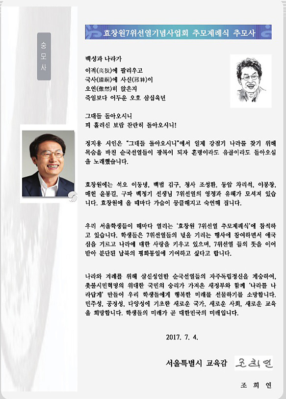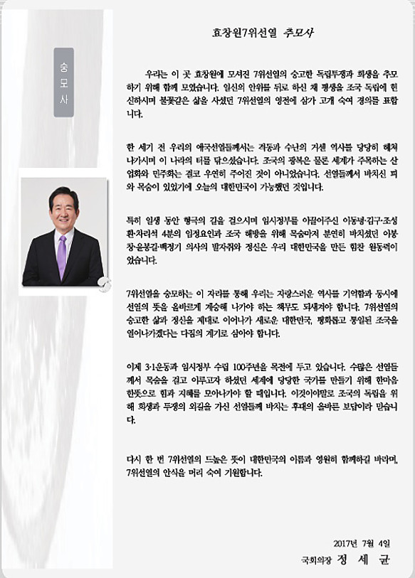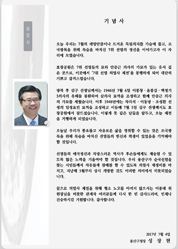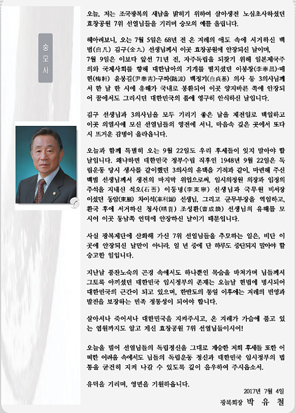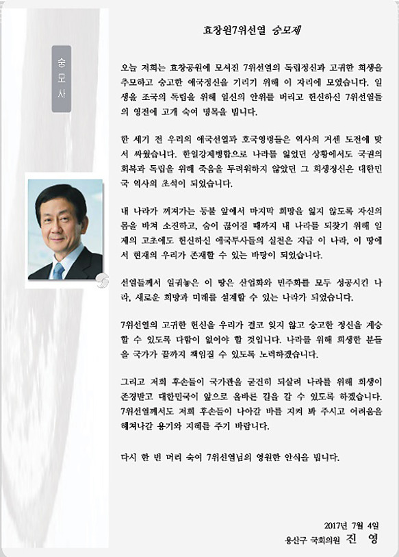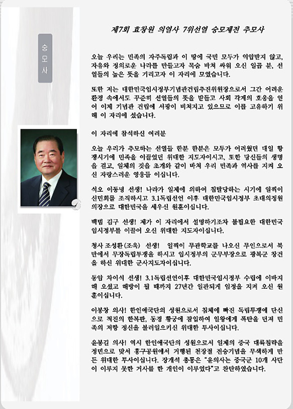 추모 축전 인사 1 페이지 > 효창원8위선열기념사업회