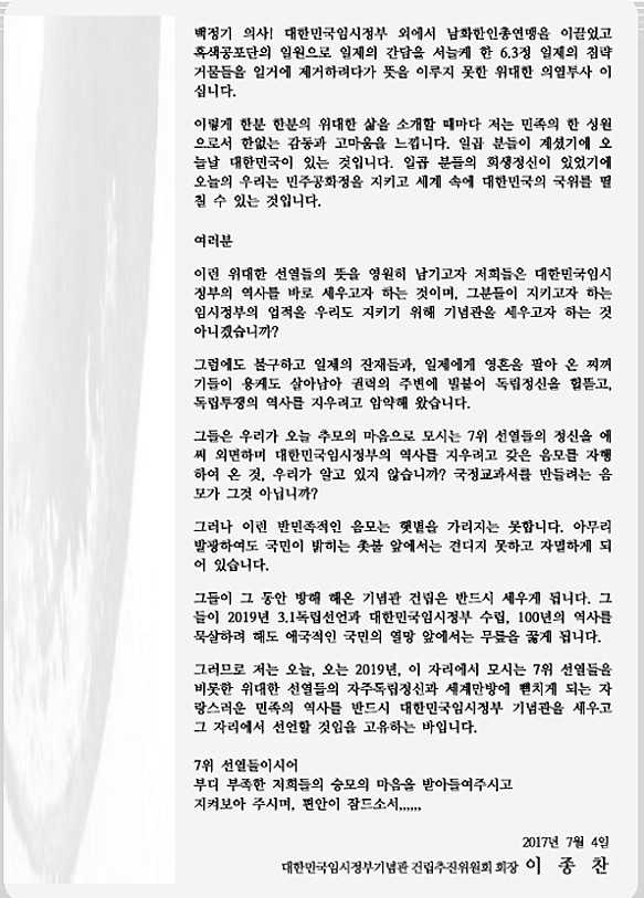 대한민국임시정부기념관 건립추진위원회 회장 이종찬 -2