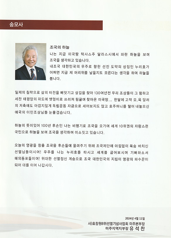 미국 민주평화통일자문회의 달라스 협회장 겸 효창원 8위선열기념사업회 미주본부장 유석찬